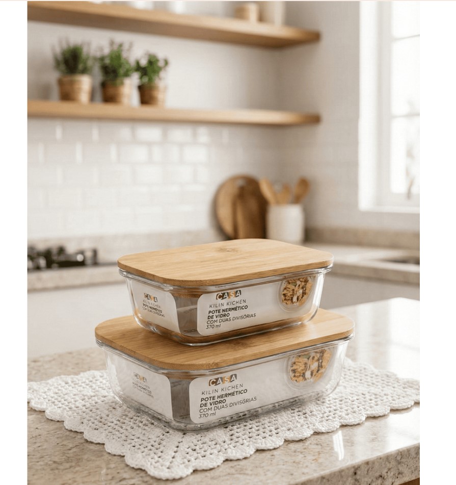 Organize sua alimentação com praticidade e segurança! Este Pote Hermético de Vidro com divisórias é a solução perfeita para suas marmitas do dia a dia, permitindo separar os alimentos sem misturar sabores.