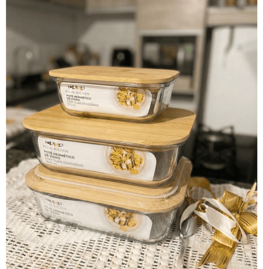 01 Pote de Vidro Hermético 1040ml com Divisórias